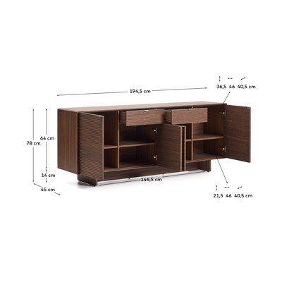 W dekorze orzechaZ płyty MDFPowłoka: fornirCiemnobrązowaSzerokość 194,5 cmWysokość 78 cmGłębokość 45 cm