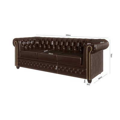 Z imitacji skóry, typu chesterfield, ciemnobrązowa, wodoodporna/odpowiednia dla zwierząt domowych/plamoodporna, dwuosobowa, szerokość 203 cm
