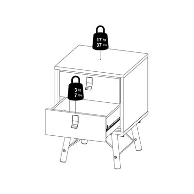 Szafka nocna Ry marki Tvilum to eleganckie połączenie stylu retro i nowoczesności. Ciemnobrązowe wykończenie z drewnianymi szufladami i czarnymi uchwytami nadaje wyrafinowany wygląd. Dwie przestronne szuflady zapewniają dużo miejsca do przechowywania. Ukośne nogi połączone metalowymi wspornikami zapewniają stabilność i nadają stolikowi charakterystyczny wygląd.