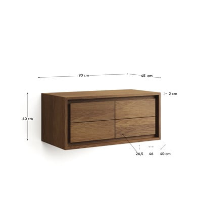 WiszącaZ litego drewna tekowegoPowłoka: lakierowanieCiemnobrązowaSzerokość 90 cmWysokość 40 cmGłębokość 45 cm