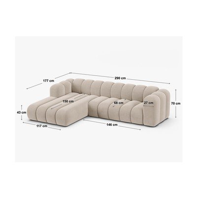 Beżowy narożnik z tkaniny szenilowej (prawostronny/z szezlongiem) Lupine – Micadoni