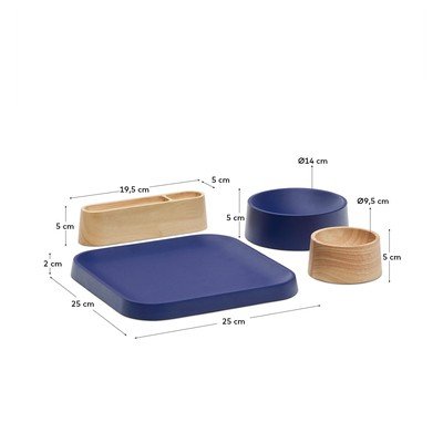 Miski zestaw Bletz4 szt., do serwowania, drewniane, ciemnoniebieskie/w naturalnym kolorze