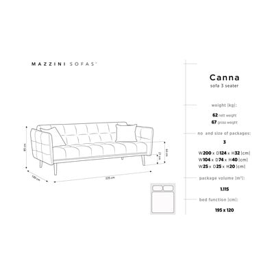 Sofa CannaRozkładana, antracytowa, trzyosobowa, szerokość 225 cm, głębokość 100 cm, głębokość siedziska 54 cm, … więcej