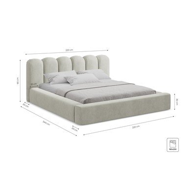 Kremowe tapicerowane łóżko dwuosobowe ze schowkiem i stelażem 180x200 cm Mano – Makamii