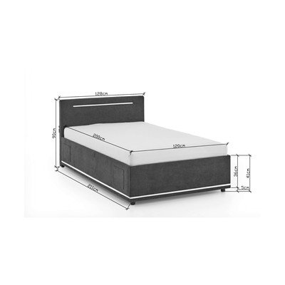 120x200 cm, ze schowkiem, ze stelażem, tapicerowane, z oświetleniem/z portem USB, ciemnoszare