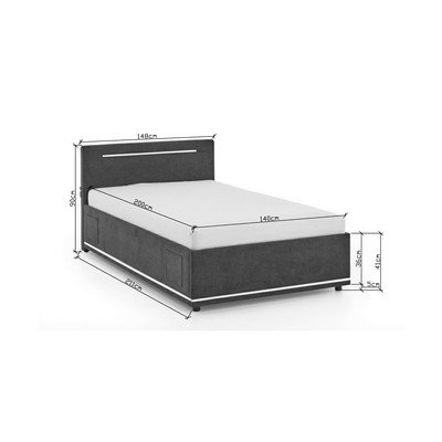 140x200 cm, ze schowkiem, ze stelażem, tapicerowane, z oświetleniem/z portem USB, ciemnoszare
