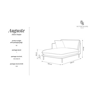 Szezlong AugusteLewostronny, aksamitny, ciemnoszary, szerokość 178 cm, głębokość 105 cm, waga 60 kg