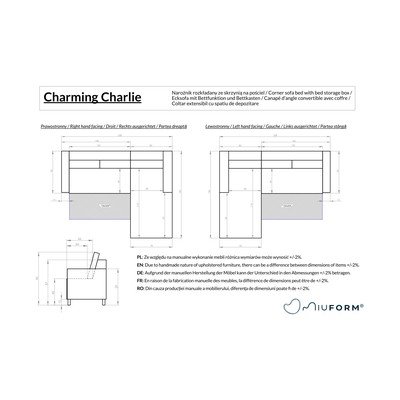 Ciemnoszary rozkładany narożnik (prawostronny) Charming Charlie – Miuform