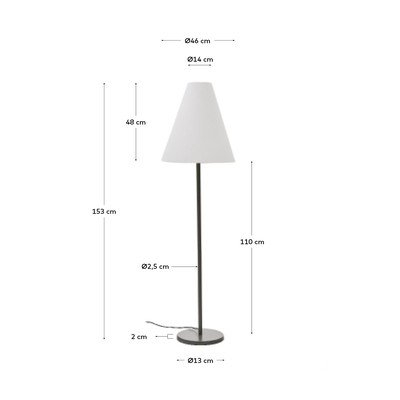 Lampa stojąca Navat marki Kave Home wniesie elegancki, a jednocześnie minimalistyczny styl do Twojego wnętrza. Lampa wykonana jest z metalu z ciemnozielonym wykończeniem i uzupełniona białym materiałowym kloszem w kształcie stożka. Lampa jest kompatybilna z żarówką E27 o maksymalnej mocy 40 W. Żarówka nie jest dołączona do zestawu.