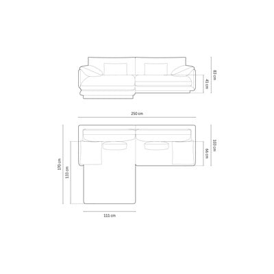 Lewostronny/z szezlongiem, ciemnozielony, czteroosobowy, szerokość 250 cm