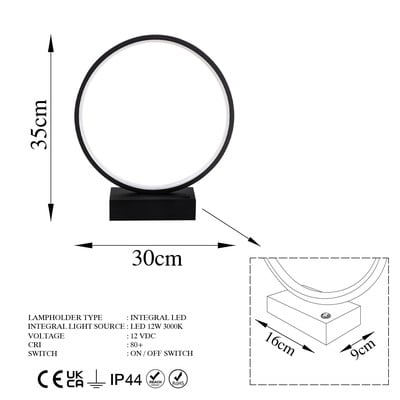 LED, metalowa, do kontaktu, czarna, wysokość 35 cm