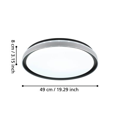 LED, z plastikowym kloszem, metalowa/plastikowa, czarna, ø 49 cm, wysokość 8 cm