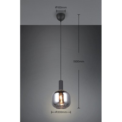 Czarna lampa wisząca ze szklanym kloszem ø 20 cm Diva – Trio