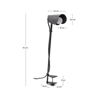 Mechanizm zaciskowy pozwala na łatwe zamocowanie lampy na różnorodnych powierzchniach, co czyni ją idealnym wyborem do kącików czytelniczych lub miejsc pracy, gdzie potrzebne jest precyzyjne i regulowane oświetlenie. Lampa jest kompatybilna z żarówkami typu E27 o maksymalnej mocy 3W (żarówka nie jest częścią zestawu) i zapewnia efektywne, ciepłe światło, doskonałe do stworzenia przytulnej atmosfery.