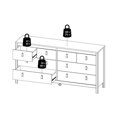 Kolekcja mebli do przechowywania Madrid jest szczególnie atrakcyjna dzięki skórzanym uchwytom, które są obecnie bardzo popularne. Jeśli jednak chcesz uzyskać bardziej klasyczny wygląd, po prostu wybierz okrągłe metalowe uchwyty, które również znajdują się w zestawie.