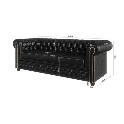 Z imitacji skóry, typu chesterfield, czarna, wodoodporna/odpowiednia dla zwierząt domowych/plamoodporna, dwuosobowa, szerokość 203 cm