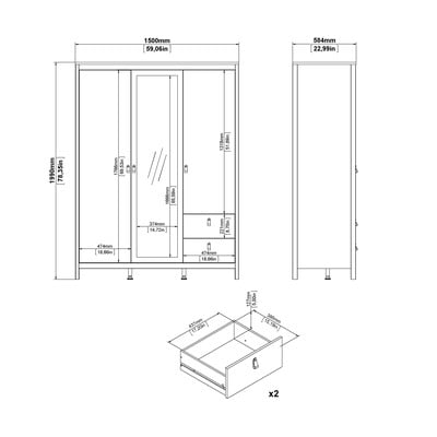 Z lustremZ płyty wiórowejPowłoka: foliaCzarnaSzerokość 150 cmWysokość 199 cmGłębokość 58 cm