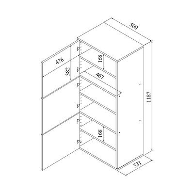 Szafka na buty BambooW dekorze dębu, z płyty wiórowej, powłoka: melamina, czarna/w naturalnym kolorze, szerokość 50 cm, wysokość 119 cm, głębokość 33 cm