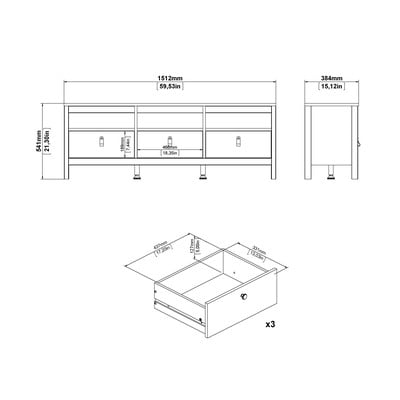 Z płyty wiórowejPowłoka: foliaCzarnaSzerokość 151 cmWysokość 54 cmGłębokość 38 cm