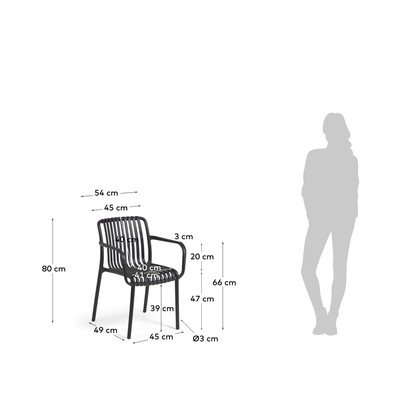 Krzesło ogrodowe IsabelliniPlastikowe, czarne, nośność 130 kg, szerokość 54 cm, wysokość 80 cm, głębokość 49 cm