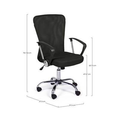 Tapicerowane, na kółkach/z regulowaną wysokością/z podłokietnikami, czarne, nośność 110 kg, wysokość siedziska 57-57 cm