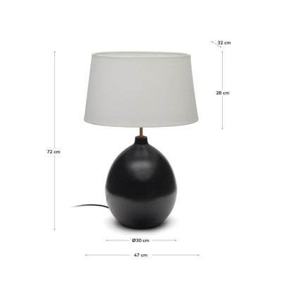 Lampa stołowa Foixa marki Kave Home zachwyca kontrastowym połączeniem czarnej metalowej podstawy i białego klosza z tkaniny. Lampa jest kompatybilna z żarówkami E27 o maksymalnej mocy 40 W. Żarówka nie jest dołączona do zestawu.