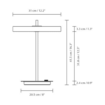 Lampa stołowa Asteria Table marki UMAGE z funkcją ściemniania łączy w sobie elegancję i funkcjonalność. Biały metalowy klosz jest uzupełniony mosiężnym elementem biegnącym przez jego środek. Lampa wyposażona jest w zintegrowany panel LED z dyfuzorem, który zapewnia przyjemne, miękkie oświetlenie. Lampa posiada wbudowany port USB do ładowania telefonu, z którego można korzystać nawet przy wyłączonym świetle.