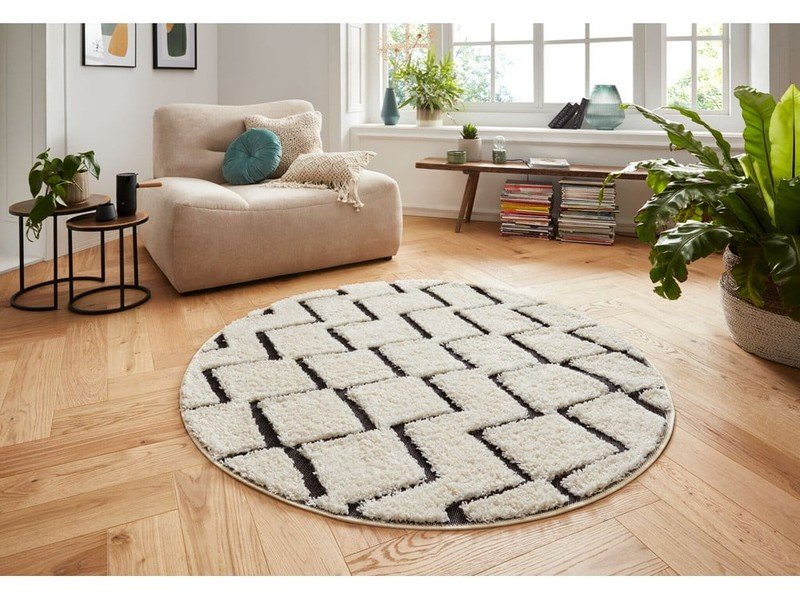 Dywan HandiraSyntetyczny, z średnim włosiem, okrągły, beżowy, ø 160 cm