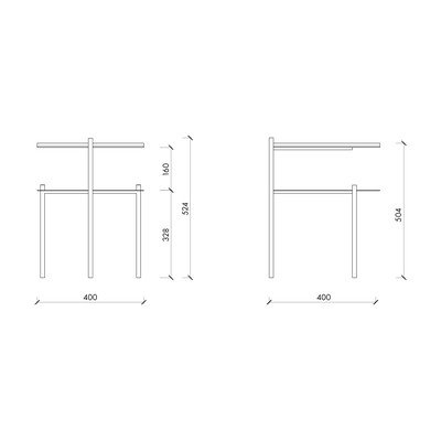 Szafka nocna Tu marki noo.ma. Dwupoziomowa konstrukcja zapewnia praktyczne miejsce do przechowywania i stanowi ciekawy element wizualny.
