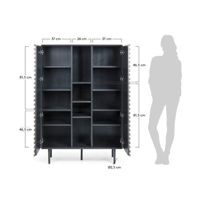 Szafka Kesia marki Kave Home to elegancki mebel, który wniesie do Twojego wnętrza nowoczesny styl i funkcjonalność. Jej design wyróżnia się charakterystycznymi drzwiami z drewnianymi lamelami, które nadają całości lekkości i oryginalnego charakteru.