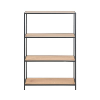 Kolekcja Seaford charakteryzuje się subtelną metalową konstrukcją w czarnym kolorze. W tym przypadku uzupełniają ją półki w dekorze dzikiego dębu.