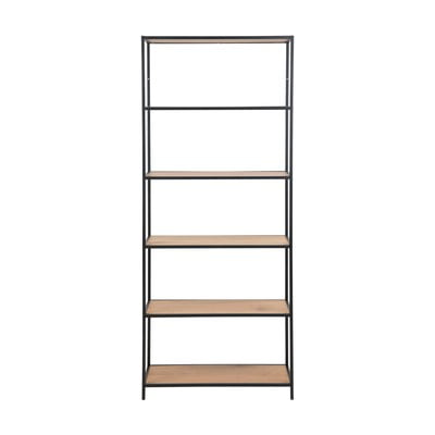 Kolekcja Seaford charakteryzuje się subtelną metalową konstrukcją w czarnym kolorze. W tym przypadku uzupełniają ją półki w dekorze dzikiego dębu.