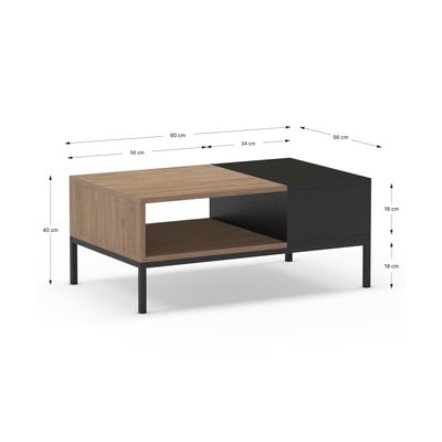 Czarno-naturalny stolik 56x90 cm Cailin – Marckeric