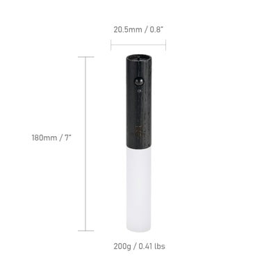 Lampa wykonana jest z wysokiej jakości lakierowanego drewna i matowego szkła akrylowego. W jej uchwycie znajdują się magnesy, które umożliwiają umieszczenie jej na ścianie za pomocą dołączonej okrągłej podstawki. Można ją również łatwo zdjąć i mieć zawsze przy sobie – przyda się podczas nocnych spacerów czy jako źródło światła do pracy lub czytania.