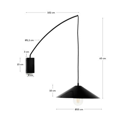 Kinkiet Kally marki Kave Home to idealny dodatek dla osób poszukujących oryginalnego i stylowego oświetlenia. Lampa wykonana jest z metalu i zachwyca nietypowym kształtem ze stożkowym kloszem zawieszonym na kablu z tkaniny. Do użytkowania należy dokupić żarówkę z gwintem E27 o maksymalnej mocy 40 W.