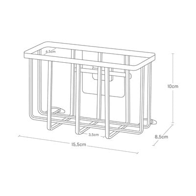 Koszyk wystarczy przymocować do dwóch haków ściennych znajdujących się w zestawie. Samoprzylepna folia mocująca zapewnia bezpieczne mocowanie na gładkich i nieporowatych powierzchniach bez konieczności wiercenia.