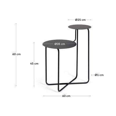 blaty stolików mają średnice 56,5 cm i 35 cm.
