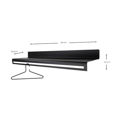 Z półką, metalowy, czarny, szerokość 120 cm, wysokość 18 cm, głębokość 30 cm
