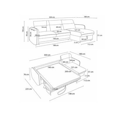 Do spania/częściowo rozkładany/rozkładany/ze schowkiemPrawostronny/lewostronny/strona zmienna/z szezlongiemWodoodpornyCzarnyCzteroosobowySzerokość 300 cmGłębokość 180 cmGłębokość siedziska 58 cm