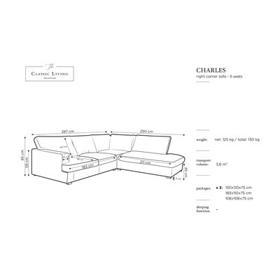LewostronnyCzarnyCzteroosobowySzerokość 287 cmGłębokość 250 cmGłębokość siedziska 66 cm