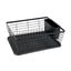 Niezbyt duża, nowocześnie wyglądająca suszarka do naczyń. Suszarka jest w połowie, tacka jest plastikowa. Obie są bardzo ładne.