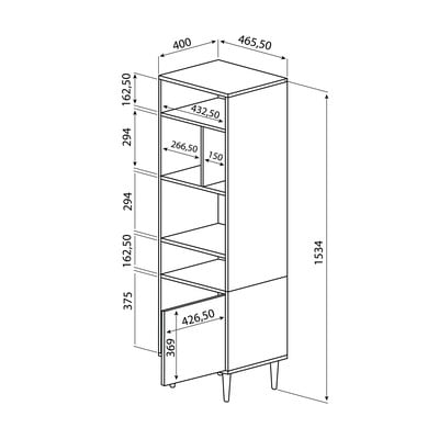 W dekorze dębu, z płyty wiórowej, powłoka: melamina, czarny/w naturalnym kolorze, szerokość 47 cm, wysokość 153 cm, głębokość 40 cm