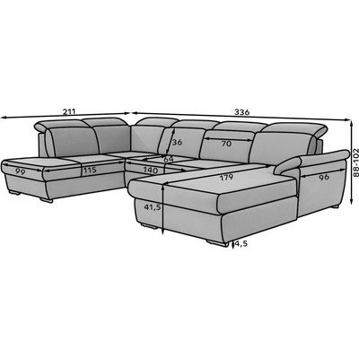 Częściowo rozkładany/rozkładany, lewostronny/w kształcie litery U, czarny, powyżej 4 osób, szerokość 336 cm