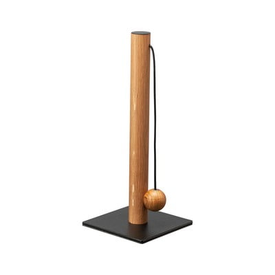 Ma stalową podstawę pokrytą skórą z recyklingu i drewnianym drążkiem z europejskiego dębu. W zestawie znajduje się skórzany sznurek z drewnianą kulką, która utrzymuje rolkę ręczniku na miejscu. Wymiana rolki jest bardzo prosta – wystarczy przewlec skórzany sznurek przez rolkę, a następnie wsunąć ją na drewniany drążek.