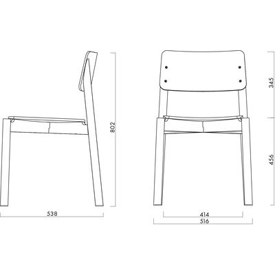 Siedzisko i oparcie wykonano z giętej sklejki pokrytej bukową okleiną. Solidne nogi z litego drewna bukowego gwarantują stabilność i wytrzymałość mebla.