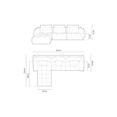 Prawostronny/lewostronny/strona zmienna/z szezlongiem, czerwony, powyżej 4 osób, szerokość 332 cm