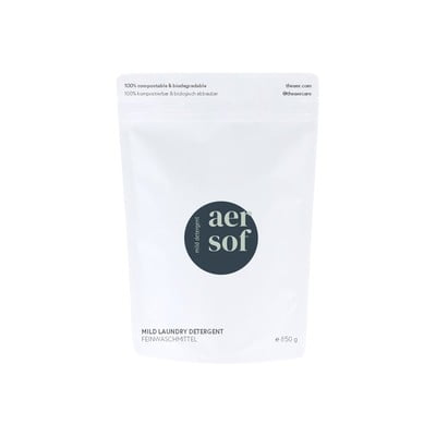 Proszek do prania marki aer zapewniatrwałość, ekologiczność i dokładność. Nie tylko uzyskasz czyste i świeże pranie, ale także wyeliminujesz zużycie plastiku, ponieważ proszek jest pakowany w kompostowalne i degradowalne opakowania papierowe.