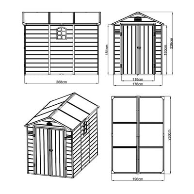 Ze względu na wysokiej jakości tworzywo sztuczne, ten domek ogrodowy marki Rojaplast charakteryzuje się lekkością i odpornością, nawet na działanie promieni UV i zmiennych warunków pogodowych. Niezbędną wytrzymałość całej konstrukcji zapewniają metalowe wzmocnienia, zewnętrzne plastikowe panele (12 mm) i plastikowe słupki (1,5 mm).