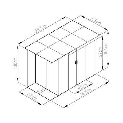 Domek ogrodowy marki Rojaplast jest idealny do przechowywania narzędzi ogrodowych, które zawsze będziesz mieć pod ręką. Ponadto wiata jest jego integralną częścią i świetnie sprawdzi się jako drewutnia. Wiatę można zmontować tylko z lewej strony.