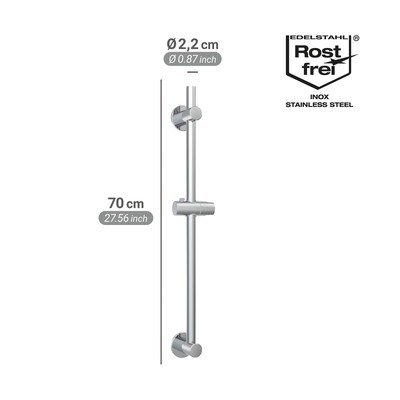 Bez wierceniaZ drążkiem z suwakiemZe stali nierdzewnejW kolorze srebra z połyskiem70 cm